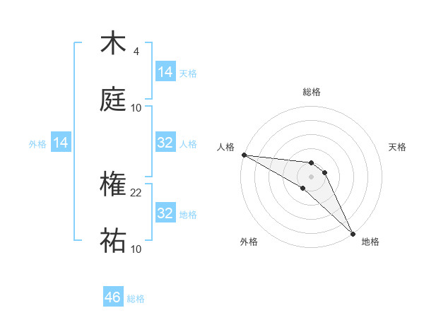 木庭 権祐さんの総格は46画の1点!