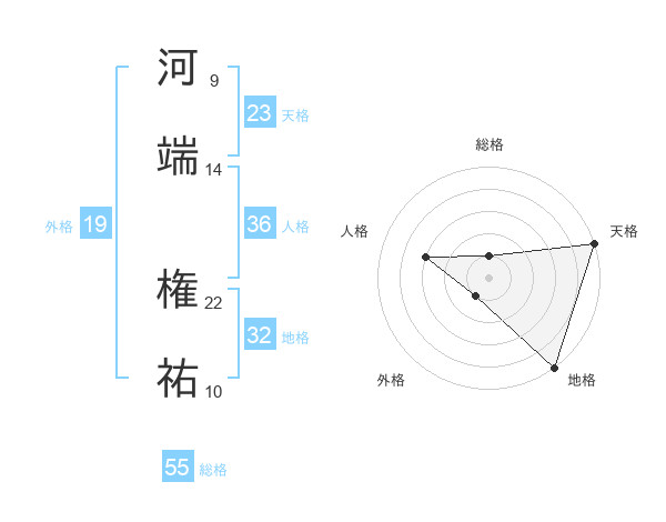 河端 権祐さんの総格は55画の1点!