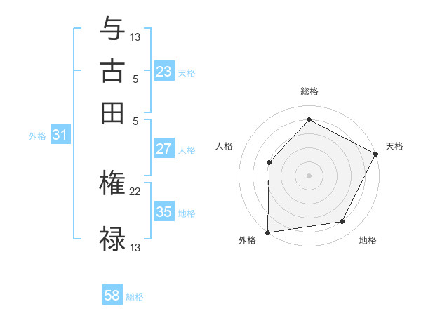 与古田 権禄さんを姓名の画数から五運を鑑定