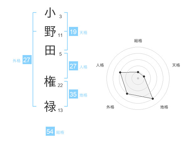 小野田 権禄さんの総格は54画の1点!