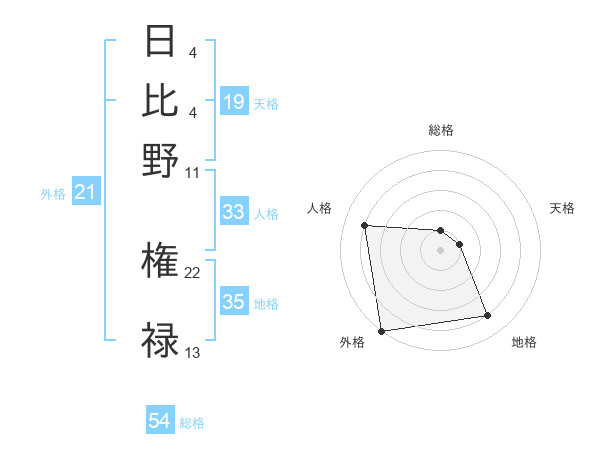日比野 権禄さんを姓名の画数から五運を鑑定