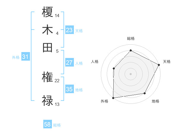 榎木田 権禄さんを姓名の画数から五運を鑑定