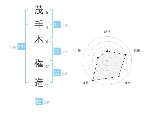 茂手木 権造さんを姓名の画数から五運を鑑定