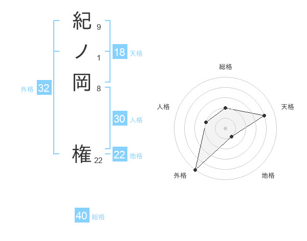 紀ノ岡 権さんの総格は40画の2点!