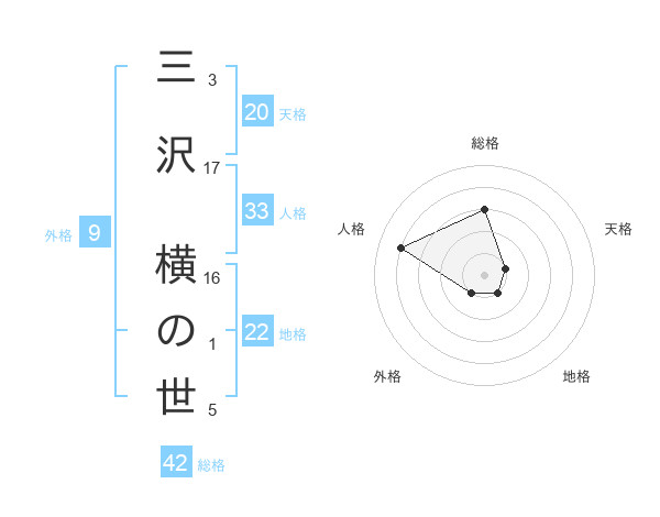 三沢 横の世さんを姓名の画数から五運を鑑定