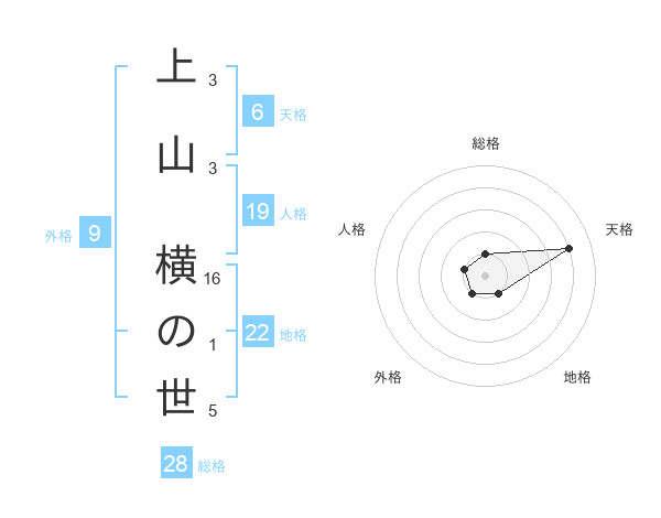 上山 横の世さんの総格は28画の1点!