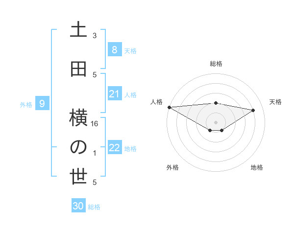 土田 横の世さんの総格は30画の2点