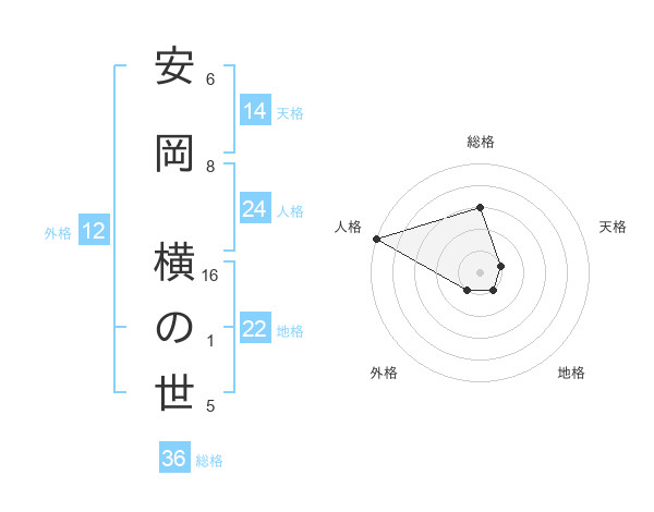 安岡 横の世さんの総格は36画の3点!