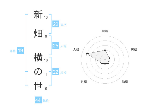 新畑 横の世さんを姓名の画数から五運を鑑定
