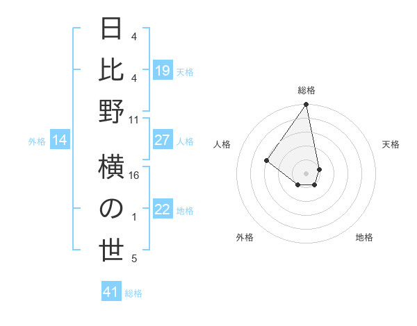 日比野 横の世さんの総格は41画の5点!