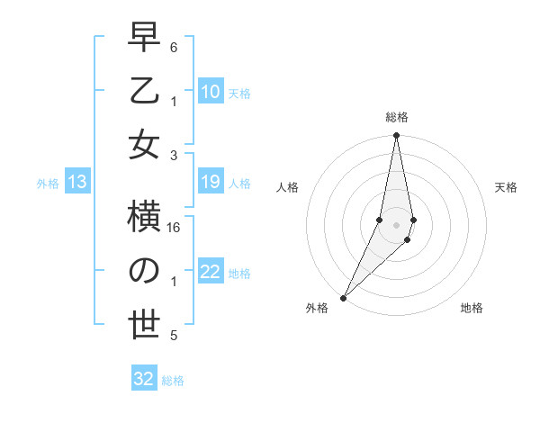 早乙女 横の世さんの総格は32画の5点!