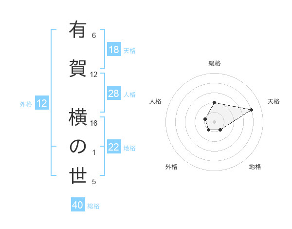 有賀 横の世さんを姓名の画数から五運を鑑定