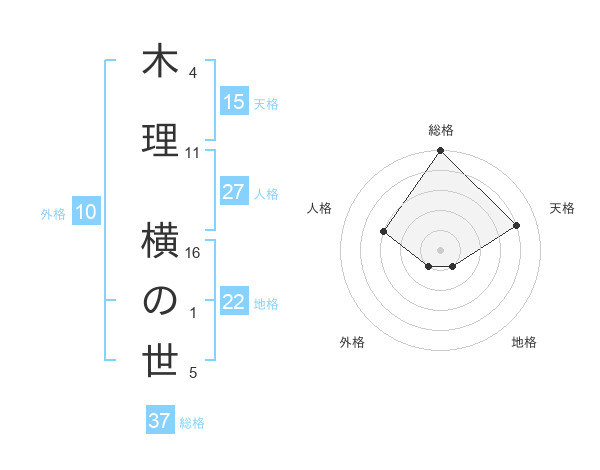 木理 横の世さんの総格は37画の5点!