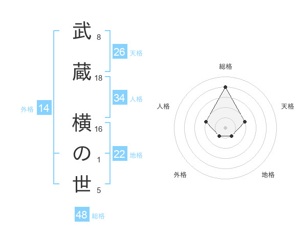武蔵 横の世さんを姓名の画数から五運を鑑定