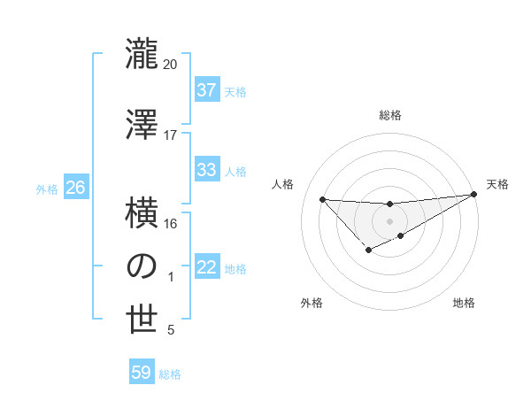 瀧澤 横の世さんを姓名の画数から五運を鑑定
