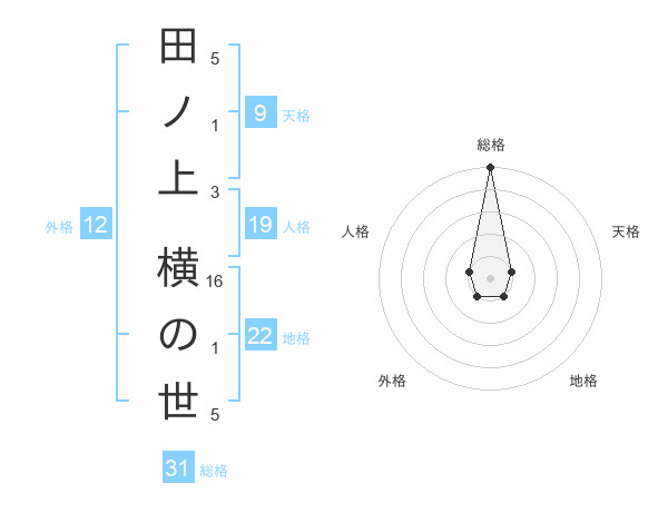 田ノ上 横の世さんを姓名の画数から五運を鑑定