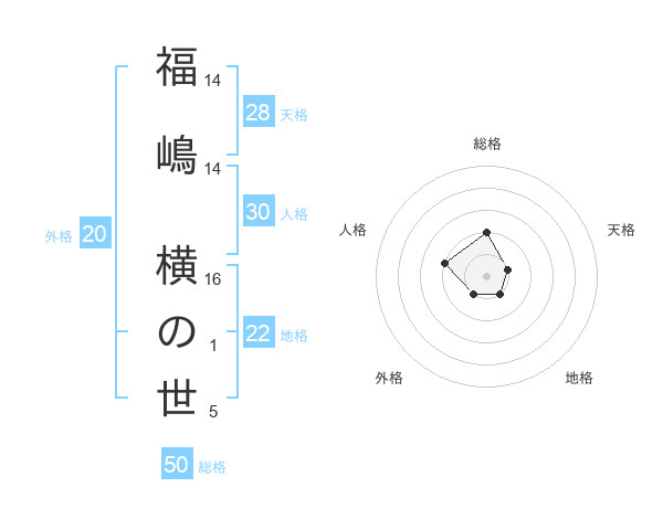 福嶋 横の世さんの総格は50画の2点!