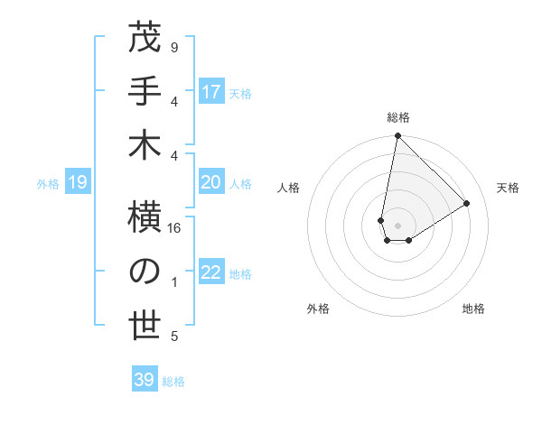 茂手木 横の世さんを姓名の画数から五運を鑑定