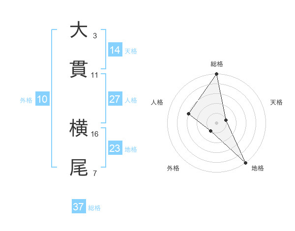 大貫 横尾さんの総格は37画の5点!
