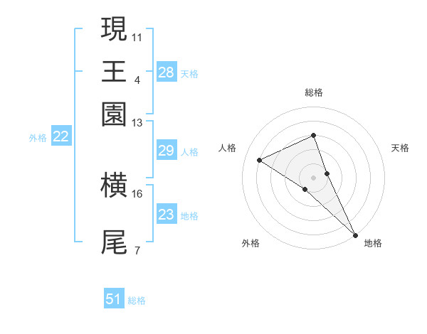 現王園 横尾さんの総格は51画の3点!