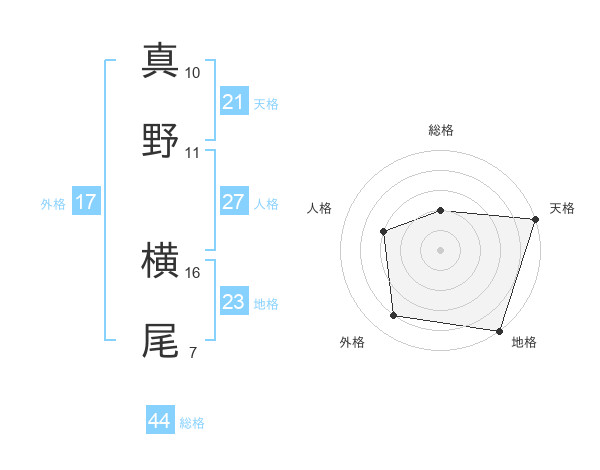 真野 横尾さんの総格は44画の2点!