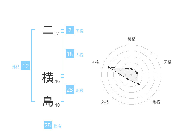 二 横島さんの地格は26画の2点!