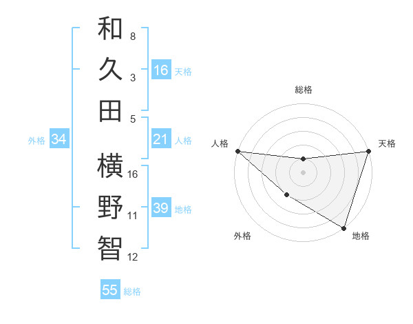 和久田 横野智さんを姓名の画数から五運を鑑定