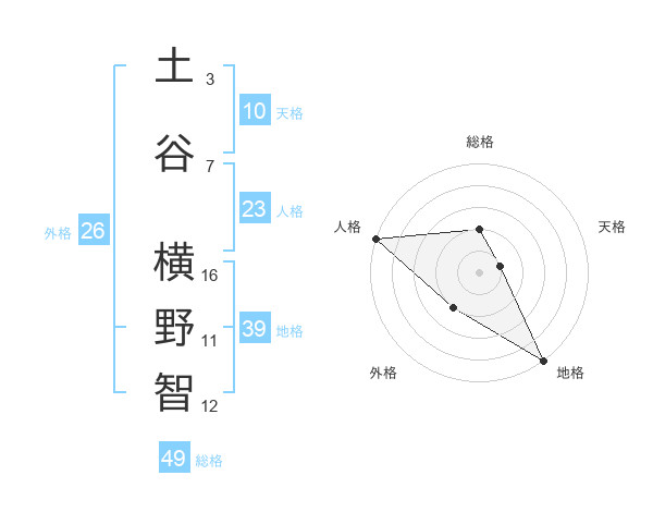 土谷 横野智さんを姓名の画数から五運を鑑定