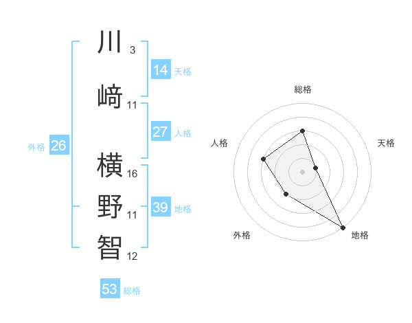 川﨑 横野智さんを姓名の画数から五運を鑑定