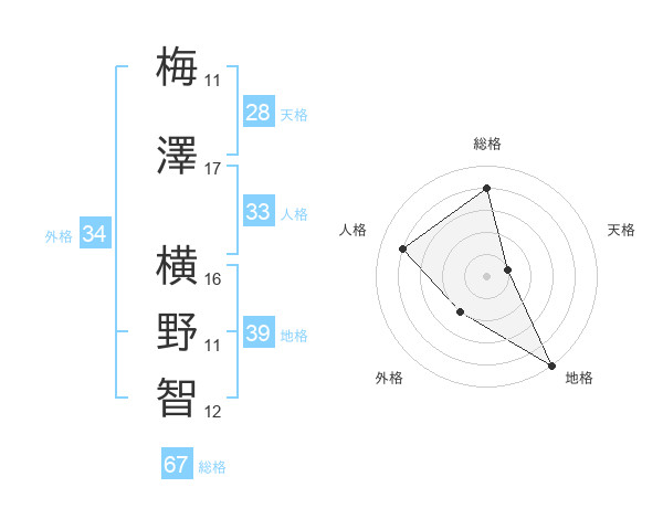 梅澤 横野智さんを姓名の画数から五運を鑑定