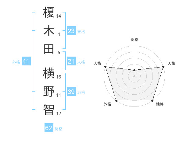 榎木田 横野智さんの天格は23画の5点!