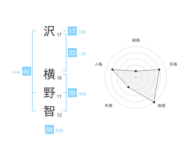 沢 横野智さんの総格は56画の1点!