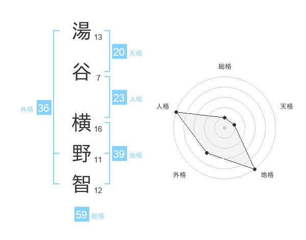 湯谷 横野智さんの総格は59画の1点!