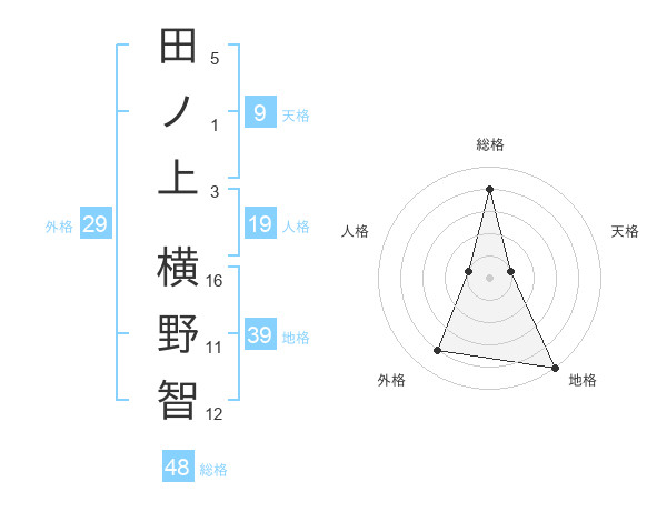 田ノ上 横野智さんの地格は39画の5点!