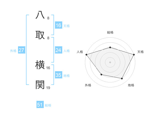 八取 横関さんの総格は51画の3点!