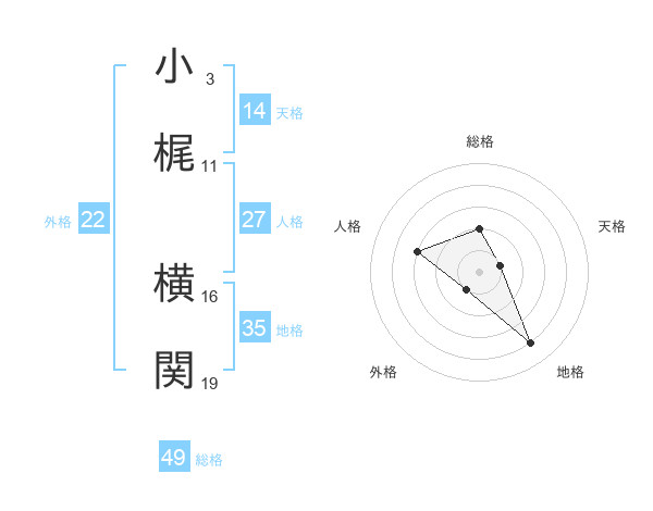 小梶 横関さんの総格は49画の2点!