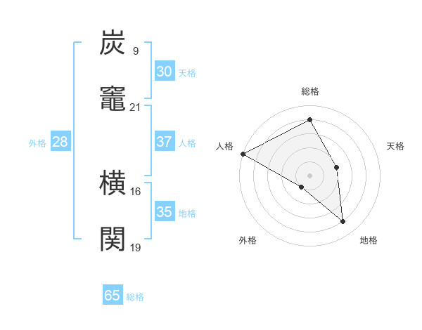 炭竈 横関さんを姓名の画数から五運を鑑定