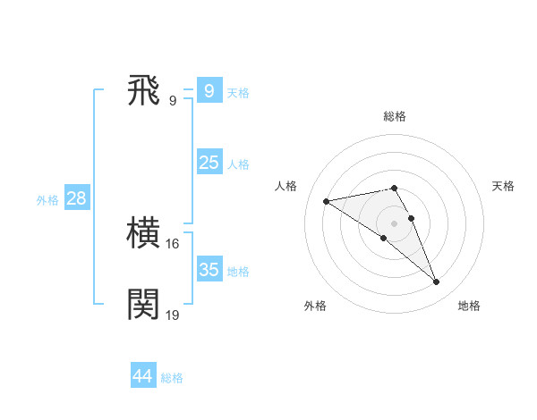 飛 横関さんの総格は44画の2点!