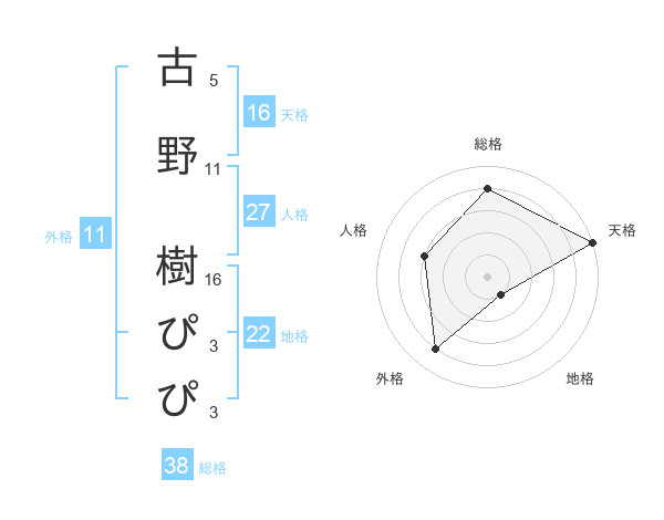 古野 樹ぴぴさんを姓名の画数から五運を鑑定
