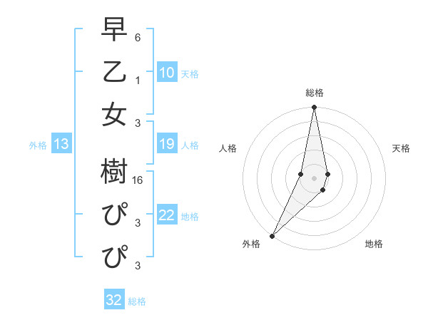 早乙女 樹ぴぴさんの外格は13画の5点!