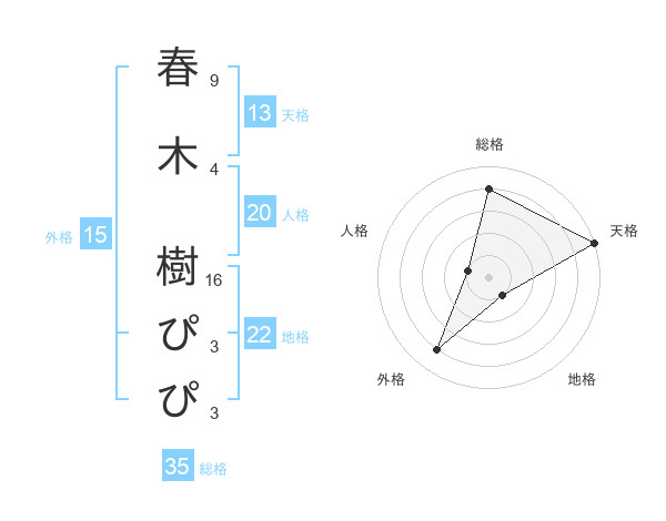 春木 樹ぴぴさんを姓名の画数から五運を鑑定