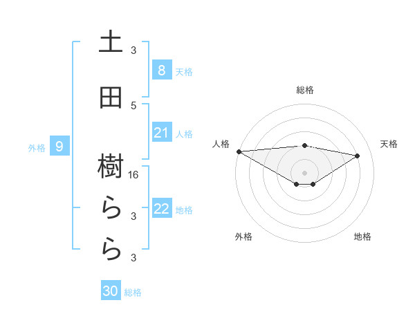 土田 樹ららさんを姓名の画数から五運を鑑定
