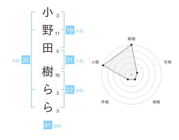 小野田 樹ららさんを姓名の画数から五運を鑑定