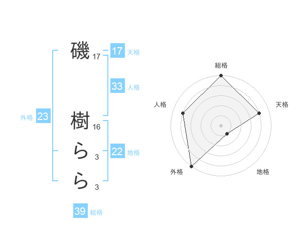 磯 樹ららさんを姓名の画数から五運を鑑定