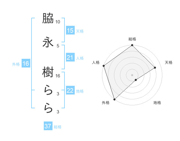 脇永 樹ららさんを姓名の画数から五運を鑑定