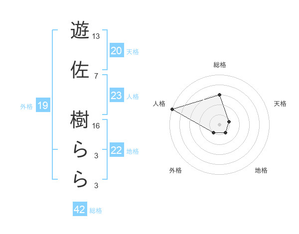遊佐 樹ららさんの総格は42画の3点!