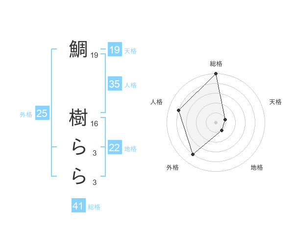 鯛 樹ららさんの総格は41画の5点!