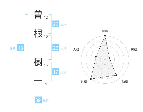 曽根 樹一さんを姓名の画数から五運を鑑定