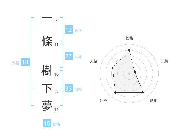 一條 樹下夢さんの総格は45画の4点!