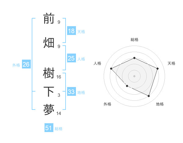 前畑 樹下夢さんを姓名の画数から五運を鑑定